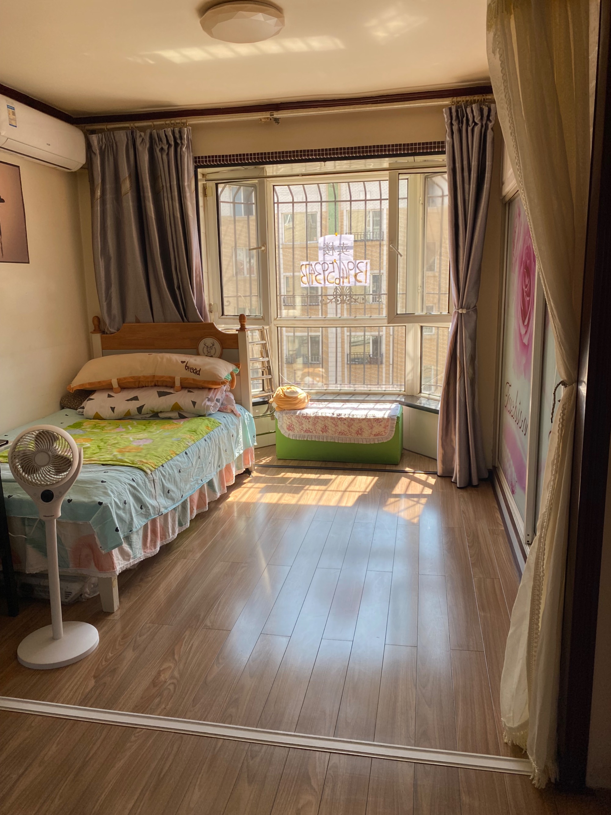 桃西彩虹河畔,2号楼,3楼,69平方,实木地板,中等装修,配有空调,洗衣机热水器,中等装修,紧邻两个公交车站,院内好停车,拎包入住,房照满五年,诚心出售,讲价请绕道,别浪费彼此时间,谢谢配合